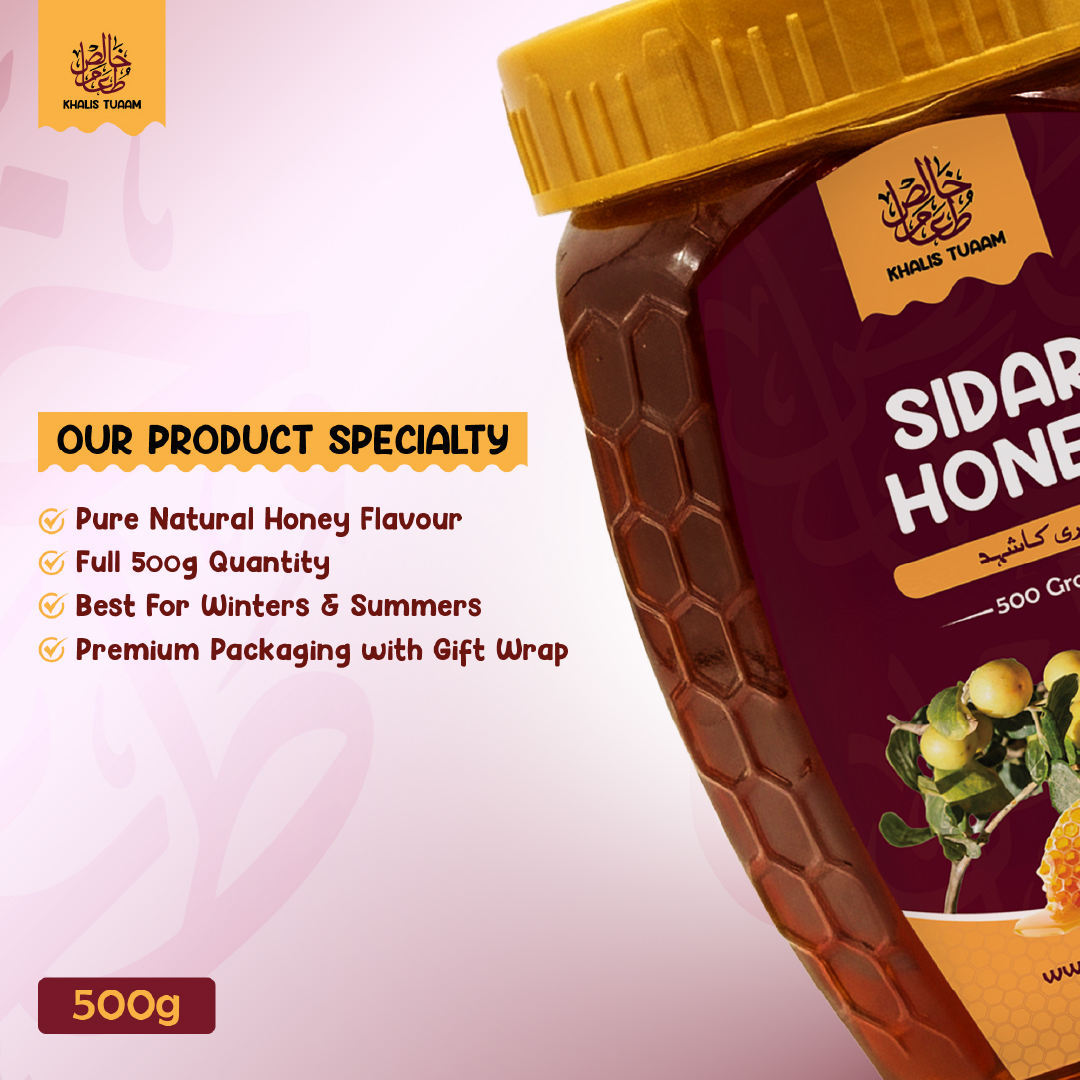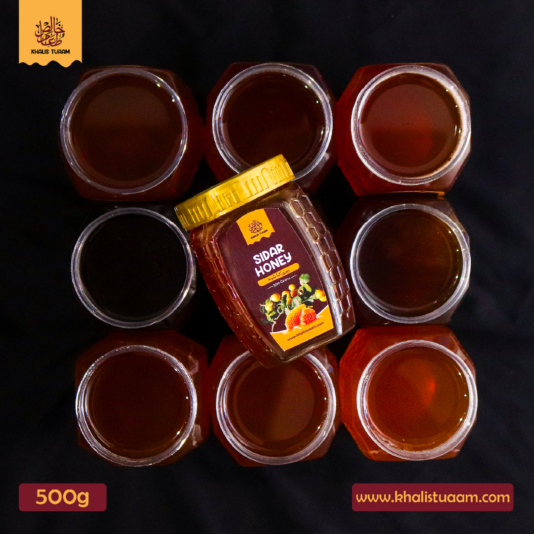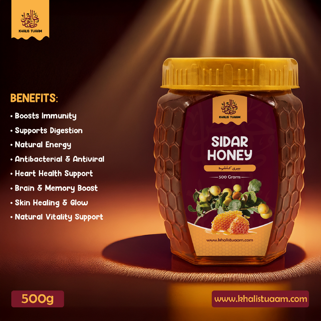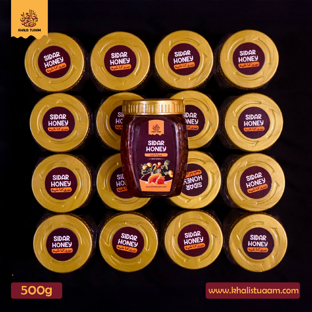 Sidar Honey is a traditional Pakistani honey obtained from the flowers of the Sidar (Beri) tree. Known locally as Beri ka Shehad, this honey is harvested by native small-sized bees, preserving its natural purity and original taste.